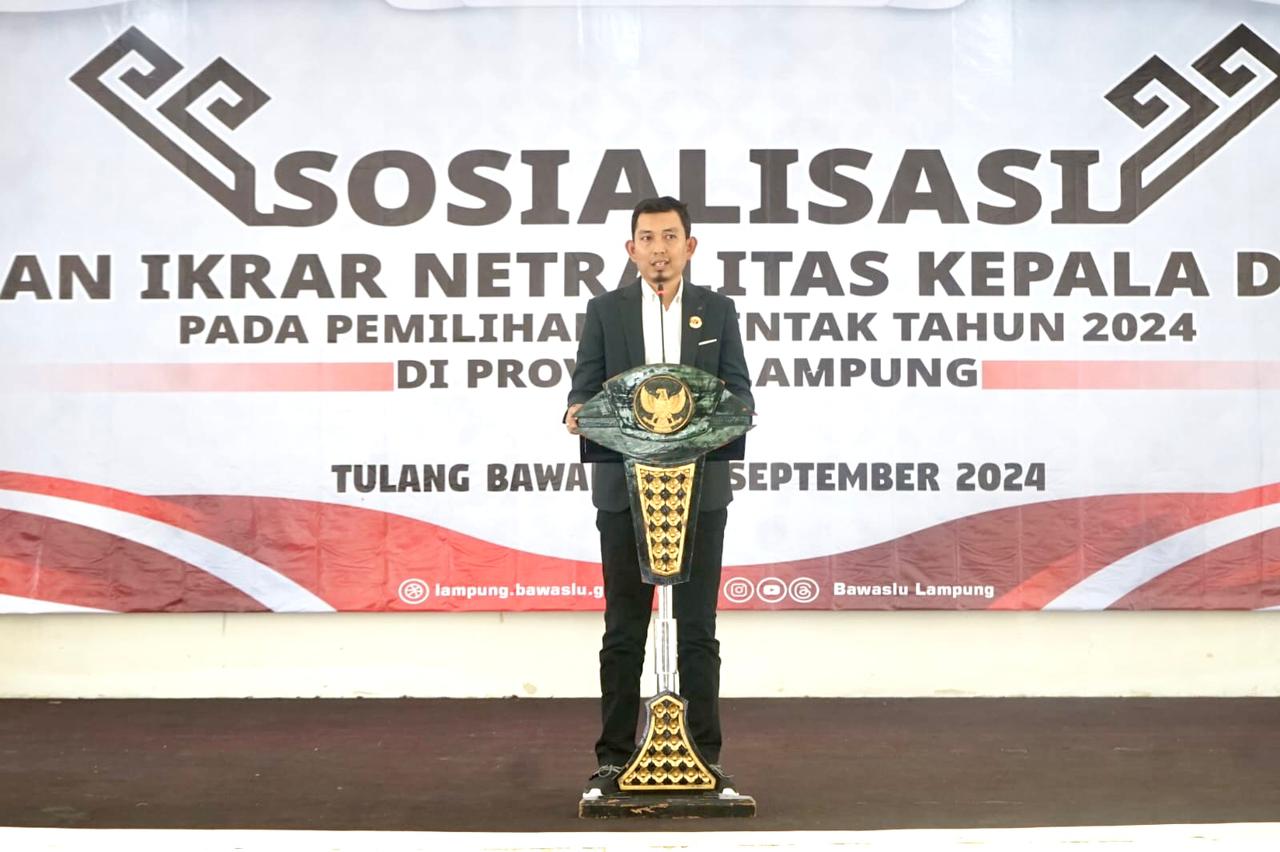 “Berdasarkan UU No. 1 Tahun 2015 Jo UU No. 10 Tahun 2016, sebagaimana Pasal 70 ayat 1, kami mengingatkan bahwa pejabat negara, pejabat daerah, ASN, TNI, Polri, serta kepala desa atau lurah dilarang membuat keputusan atau tindakan yang menguntungkan atau merugikan salah satu pasangan calon,” ujar ketua Bawaslu Tulang Bawang,Inda Fiska Mahendro dalam sambutannya.