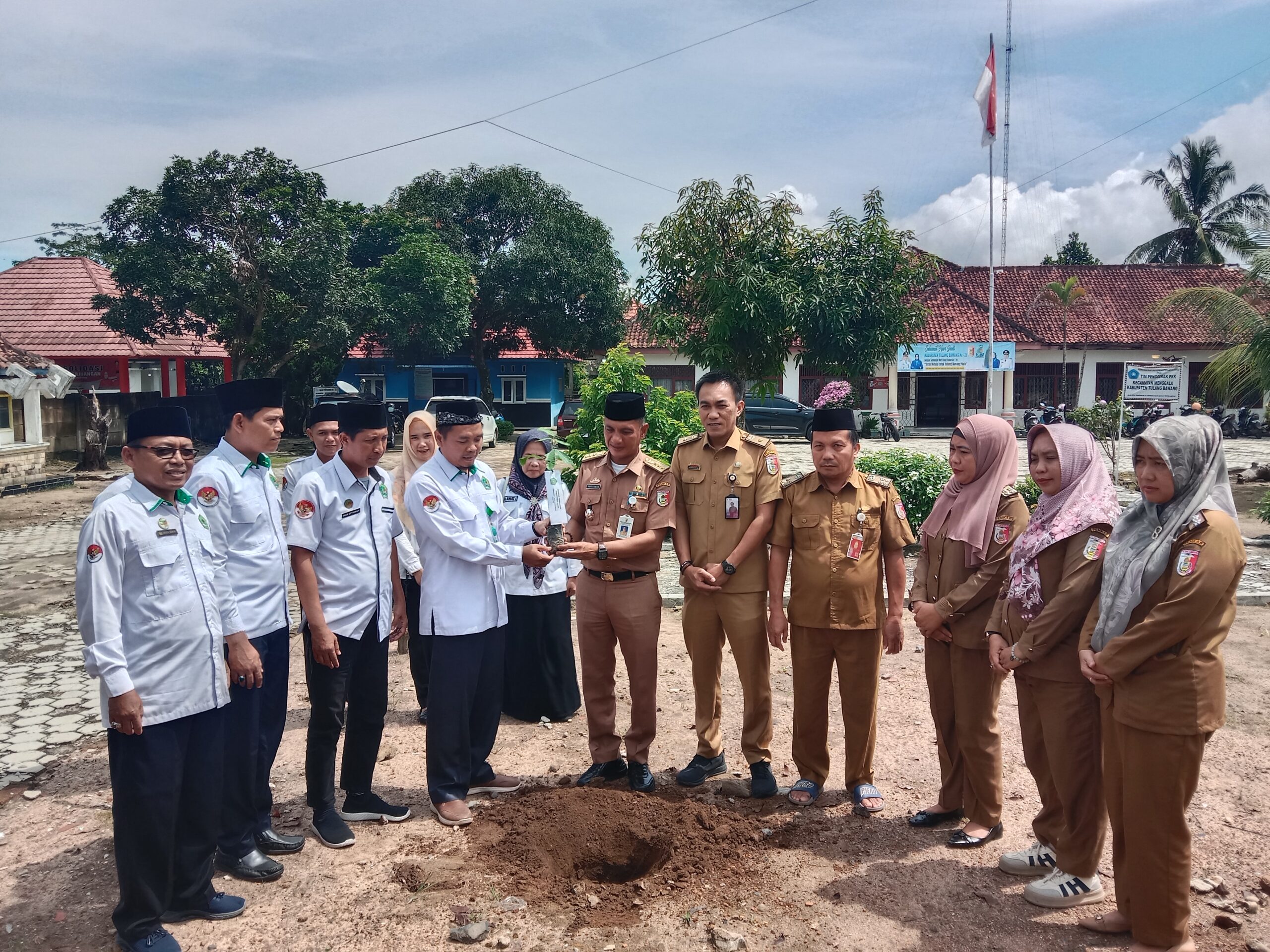 Suarapatriot.com | Tulang Bawang – Serentak Sukseskan Program Penghijauan Kementerian Agama Penanaman 1 Juta Pohon Matoa,oleh Kepala Kantor Urusan Agama (KUA) dan Camat Menggala, Dalam Rangka Peringatan Hari Bumi Sedunia Tahun 2025 dihalaman Kantor Kecamatan Menggala Kabupaten Tulang Bawang,, Selasa (22/04/2025).