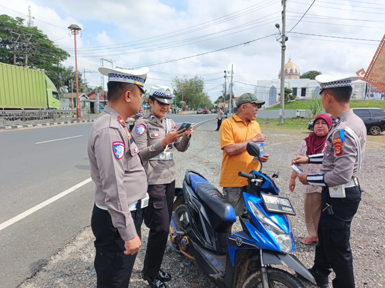 Kasat Lantas menambahkan, selain melakukan penindakan terhadap para pelanggar lalu lintas, petugas kami juga aktif memberikan edukasi kepada para pengguna jalan dengan membagikan leaflet secara gratis, dengan harapan masyarakat bisa tertib dan taat dalam berlalu lintas, sehingga bisa menekan angka kecelakaan di jalan raya.