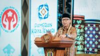 Merajut Tradisi Menenun Inovasi,Gubernur Lampung Rahmat Mirzani Djausal bersama Ketua Dekranasda Provinsi Lampung Ibu Purnama Wulan Sari Mirza Pameran Kriya Jemari Lampung 2025